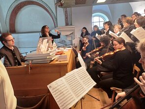 Chorleiterin Monika Schmidt, die 2020 den Chor in Inzell und 2022 in Ruhpolding übernommen hat, freut sich über den engagierten Einsatz ihrer Sängerinnen und Sänger. Mit ihrem mitreißendem Temperament versteht sie es blendend, die Probenabende immer wieder mit guter Laune aufzulockern. Die Missa in C ist eines von zahlreichen, anspruchsvollen Werken, die der Inzeller Komponist in Salzburger Diensten geschaffen hat. So sind ihm nach heutigen Erkenntnissen zahlreiche Messen, Requien, Offertorien und Motetten, Sakramentslitaneien, Schuldramen sowie deutsche geistliche Lieder zuzuordnen. Mit der neu einstudierten Komposition möchten die Singgemeinschaften auf den grandiosen Notenschatz hinweisen, den das vielseitige Inzeller Musikgenie hinterlassen hat. ls